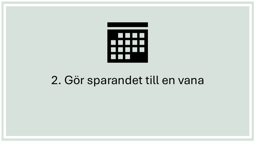Se i stället sparandet som ett långdistanslopp. Sätt upp en plan som fungerar över tid och håll dig till den.